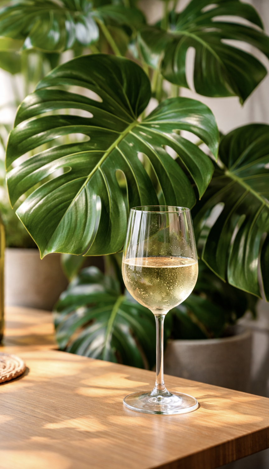 The plant and the wine exist in that delicate space where beauty depends on precision, and where everything works only because nothing is out of place.