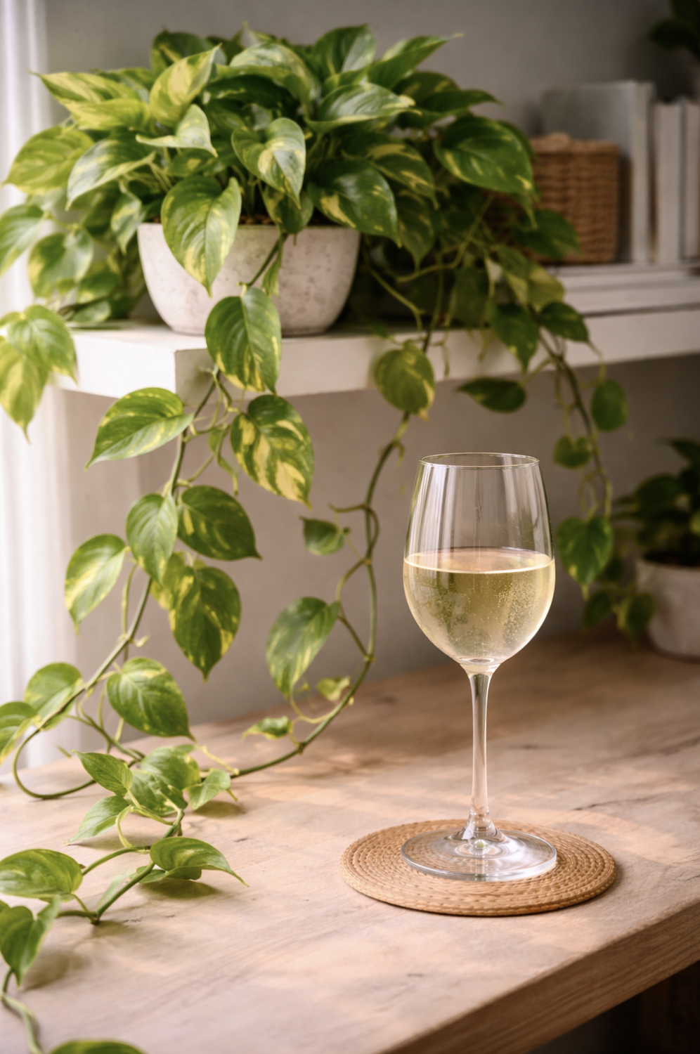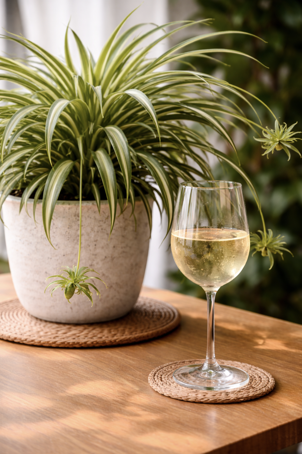 The wine opens with bursting bright citrus, lemon, lime, green apple, all layered over a clean mineral backbone that keeps everything perfectly sharp, yet somehow, never harsh. The acidity is what makes it feel alive. It moves quickly across the palate, refreshing instead of lingering, lifting instead of weighing anything down. That’s exactly what the spider plant does in a room. It creates motion at the same time it softens the space without overtaking it. Neither one needs the perfect conditions to shine, they simply respond to what’s around them and make it better.